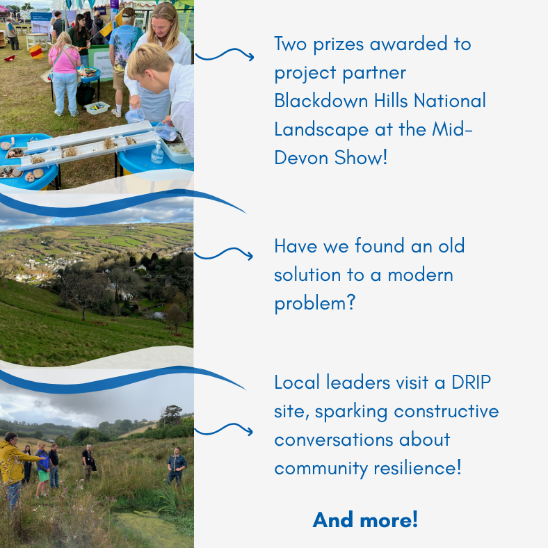 In this October newsletter edition, we highlight the importance of natural flood management – particularly the benefits of restoring natural river conditions and utilising historic earthworks to improve flood and climate resilience across Devon. You can also catch up on recent updates from DRIP sites and our project partners.