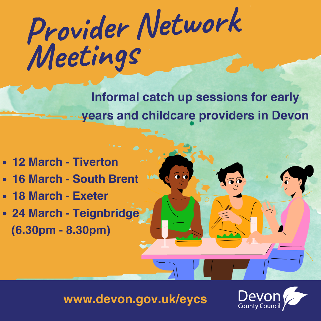 Please visit the Devon Education Services Shop to book your fully funded place: Early Years and Childcare: Provider Network Meeting | DES