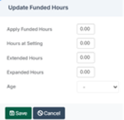 To do a bulk entering of hours you can simply click on Update Funded Hours and then enter the hours which will then populate into each pupil.  You can then amend any that have different hours attended or funded.